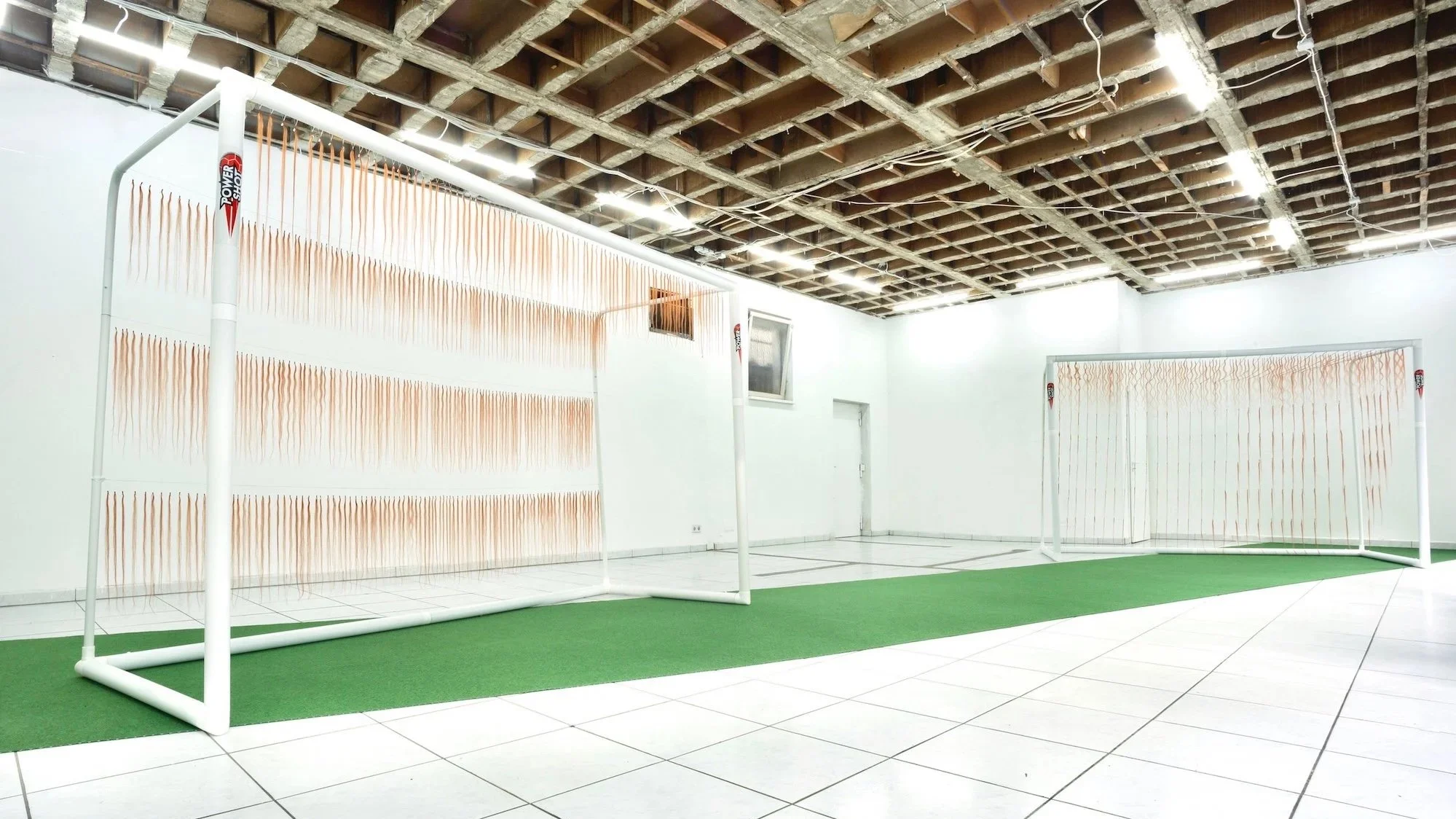 Real hair extensions (dyed red), metal, plastic, each 300 × 200 × 100 cm, 2021